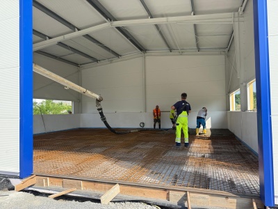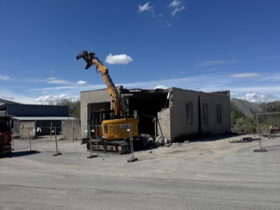 demolice staré dílny, výstavba spodní stavby, dokončovací práce na nové hale